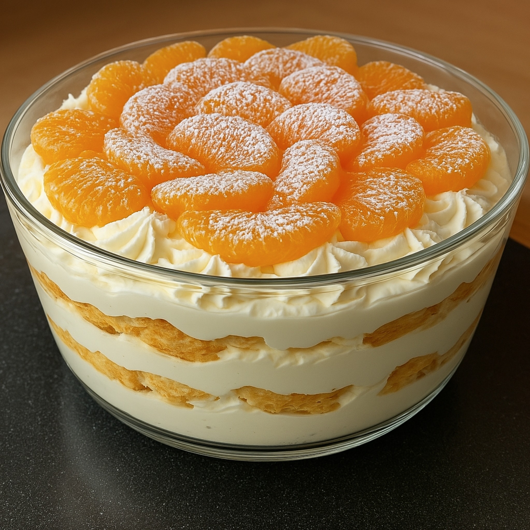 Fouettez d’abord le quark et le pudding à la vanille avec le jus de mandarine jusqu’à obtenir une consistance crémeuse.