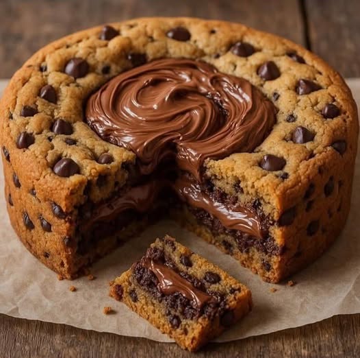 Gâteau aux biscuits et au Nutella Ingrédients : 250 g de farine 125 g de cassonade 125 g de beurre mou 1 œuf 125 g de pépites de chocolat 2 cuillères à soupe de Nutella (pour la garniture) 1 cuillère à café de vanille 125 g de levure chimique Une pincée de sel Préparation : La suite en page suivante