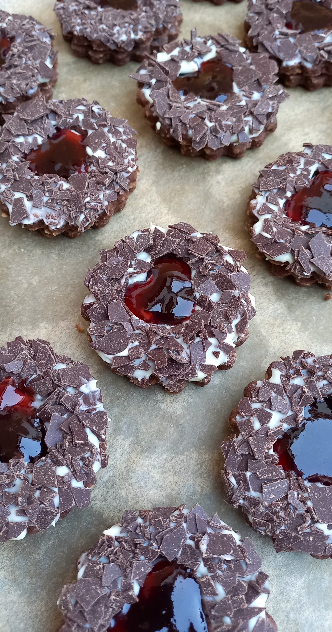 Délicieux biscuits au chocolat fourrés à la confiture.