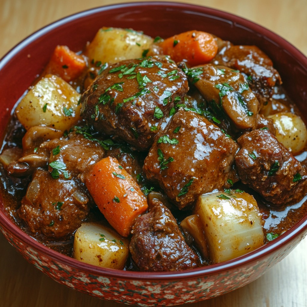 Bœuf mijoté fondant aux légumes (façon bourguignon)