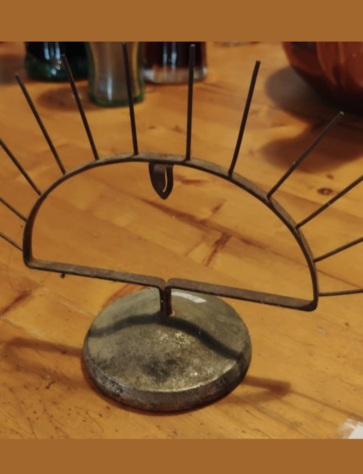 J’en ai trouvé un récemment dans un coin poussiéreux d’un marché aux puces : un fin support chromé aux bras délicats recourbés vers le haut comme un lustre pour les accessoires.