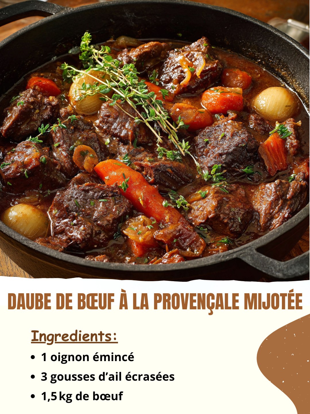 Remettez le bœuf dans la cocotte. Versez la marinade réservée (sans le vin).