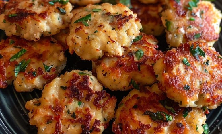 Façonnage des beignets : À l’aide de vos mains ou d’une cuillère, façonnez le mélange de poulet en petites galettes ou beignets d’environ 5 cm de diamètre. Disposez-les sur une assiette ou une plaque de cuisson.