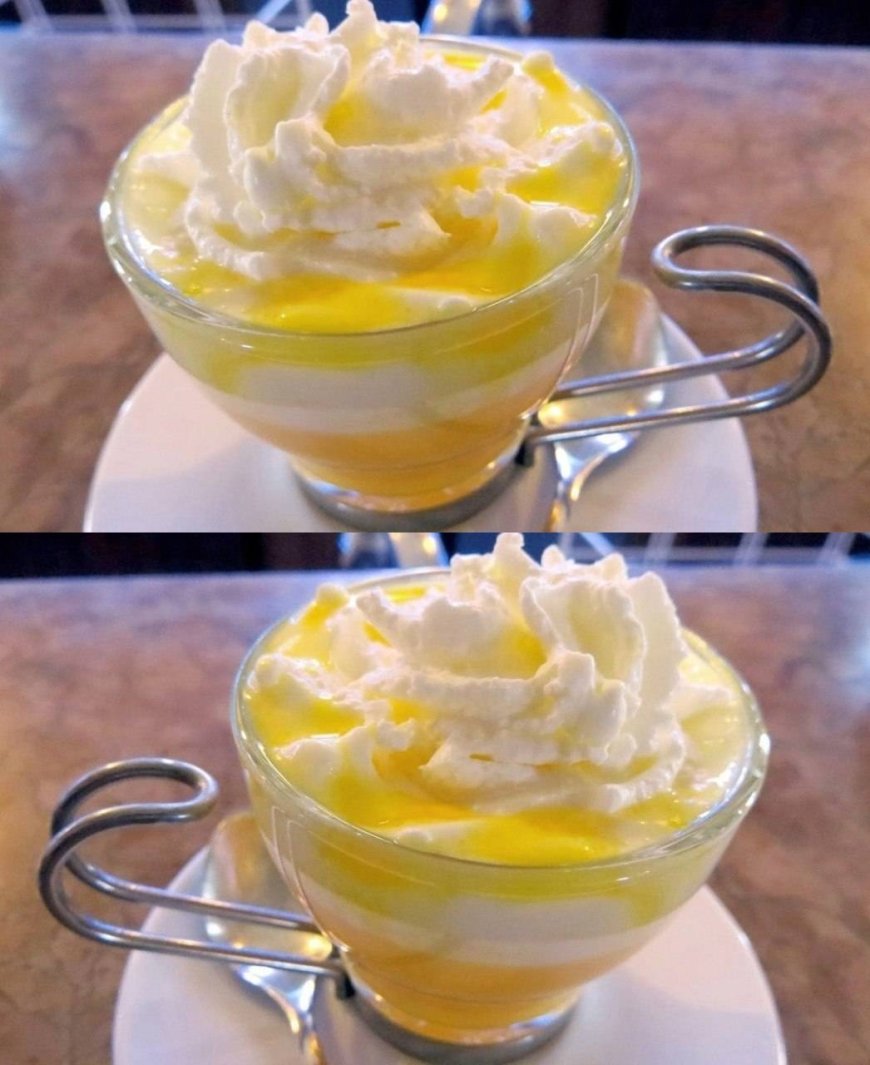 Ce dessert se déguste de préférence avec une petite cuillère ou une paille, idéale pour superposer et combiner les saveurs.