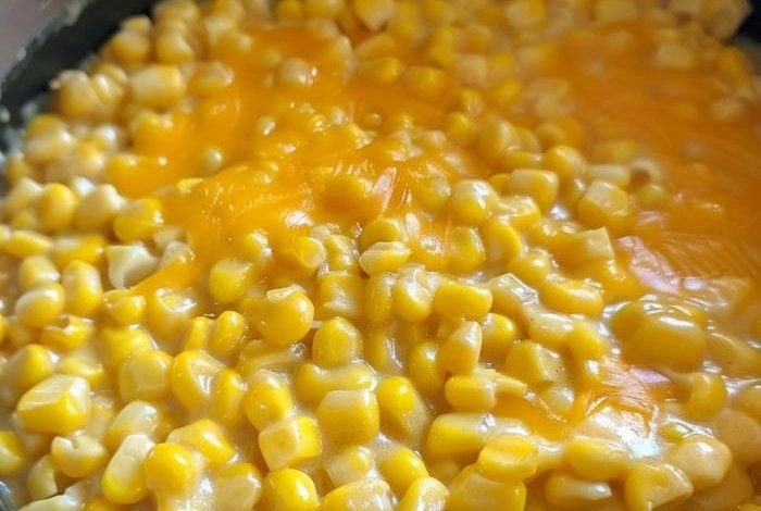 Mélanger les ingrédients dans la mijoteuse : ajouter le maïs, les fromages, le beurre, le lait, la poudre d’ail, la poudre d’oignon, le sel et le poivre.