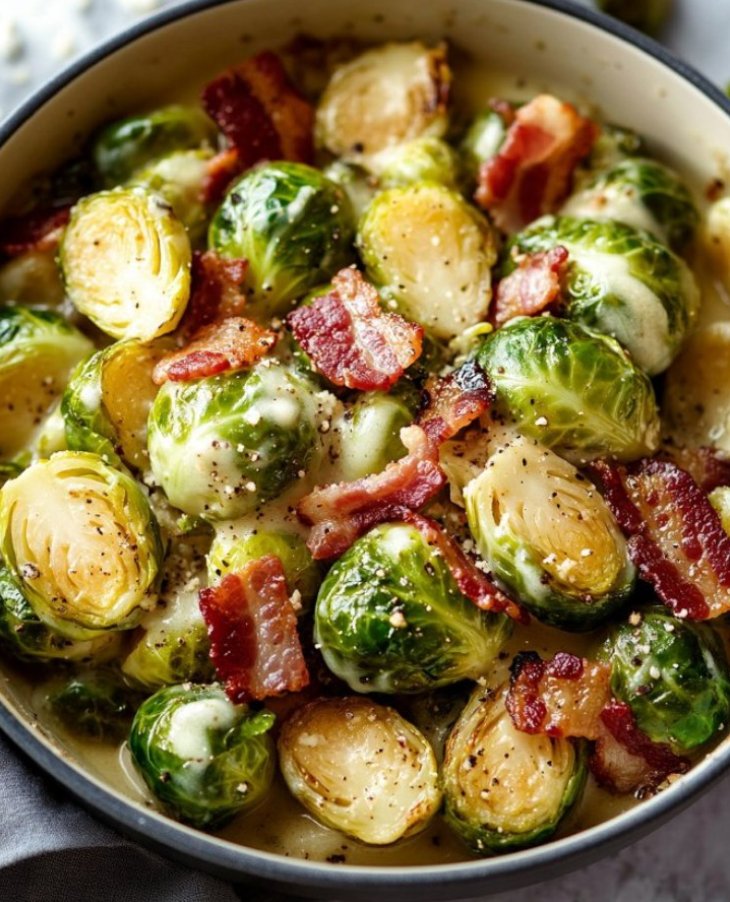 Choux de Bruxelles crémeux à l’ail et au parmesan avec Bacon