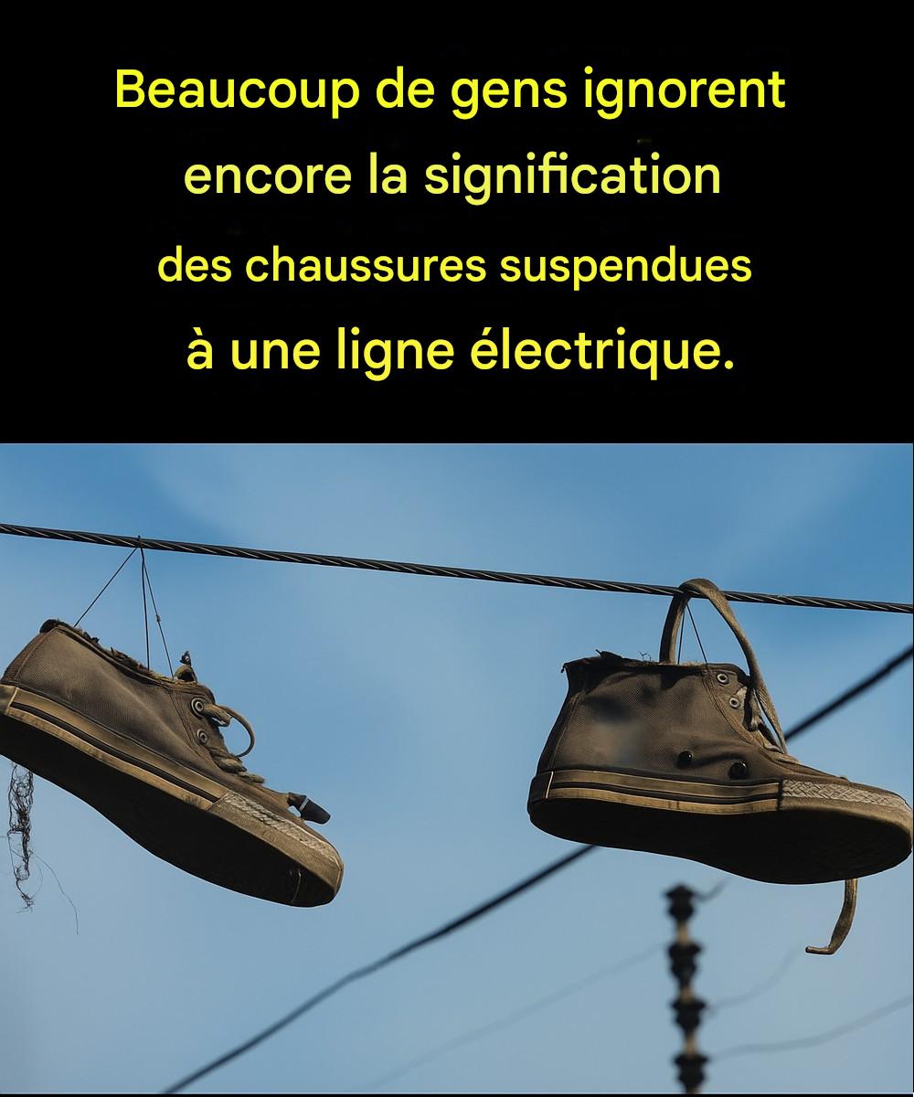 Que signifie réellement l’image de chaussures suspendues aux lignes électriques ?⚡🧵