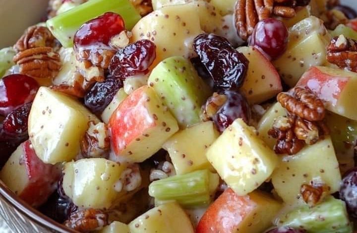 - Étape 4 : Ajouter les noix et servir : Juste avant de servir, ajouter les noix de pécan ou les noix grillées et mélanger délicatement. Servir frais ou à température ambiante.