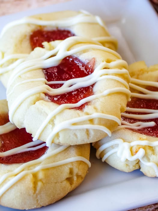 Fondants et légèrement croustillants, ces sablés festifs à la framboise sont un vrai régal. La couleur de la confiture de framboises en leur cœur évoque Noël ou la Saint-Valentin. Le délicieux filet de chocolat blanc vient sublimer toutes les saveurs.