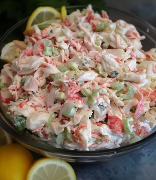 🦞🥗Crevettes tendres, crabe et homard, le tout enrobé d’une vinaigrette crémeuse et acidulée, accompagné de légumes croquants : cette salade de fruits de mer est parfaite pour les déjeuners d’été, les apéritifs raffinés ou un dîner léger ! Servez-la sur un lit de verdure, dans un sandwich ou avec des crackers pour un plat qui fera le bonheur de tous.