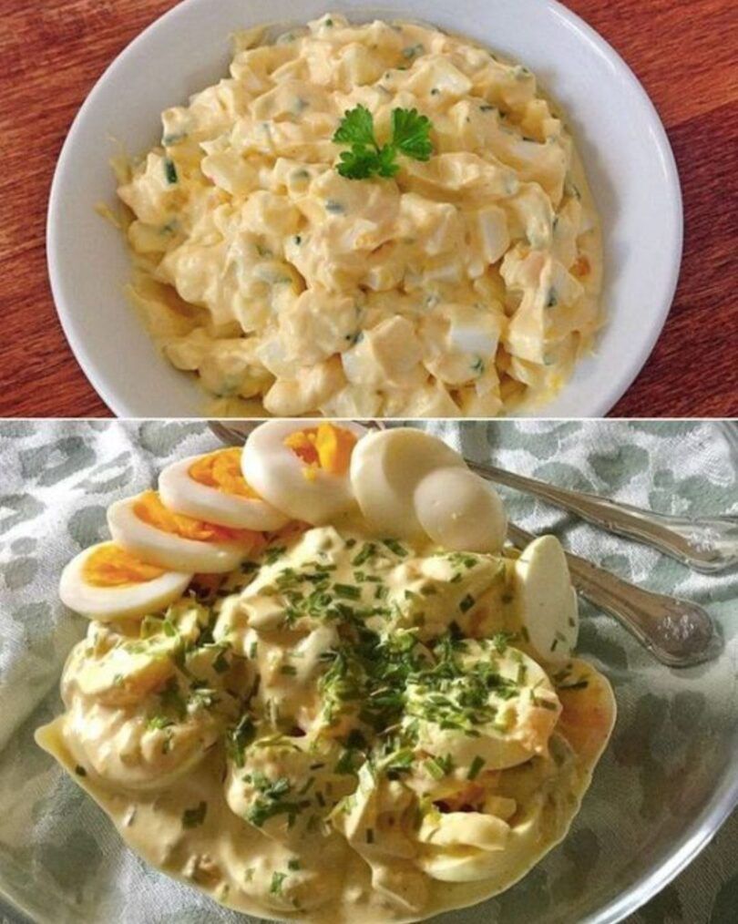 5. Servez. Disposez la salade d’œufs sur un plat de service et garnissez de persil frais, si vous le souhaitez. Elle se marie parfaitement avec du pain frais ou des petits pains.