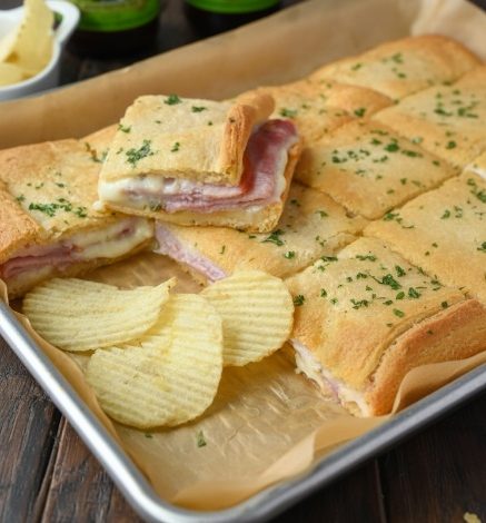 Étaler une boîte de pâte à croissant directement sur la plaque recouverte de papier sulfurisé. Cuire au four pendant 7 à 8 minutes, jusqu’à ce qu’elle soit légèrement dorée.