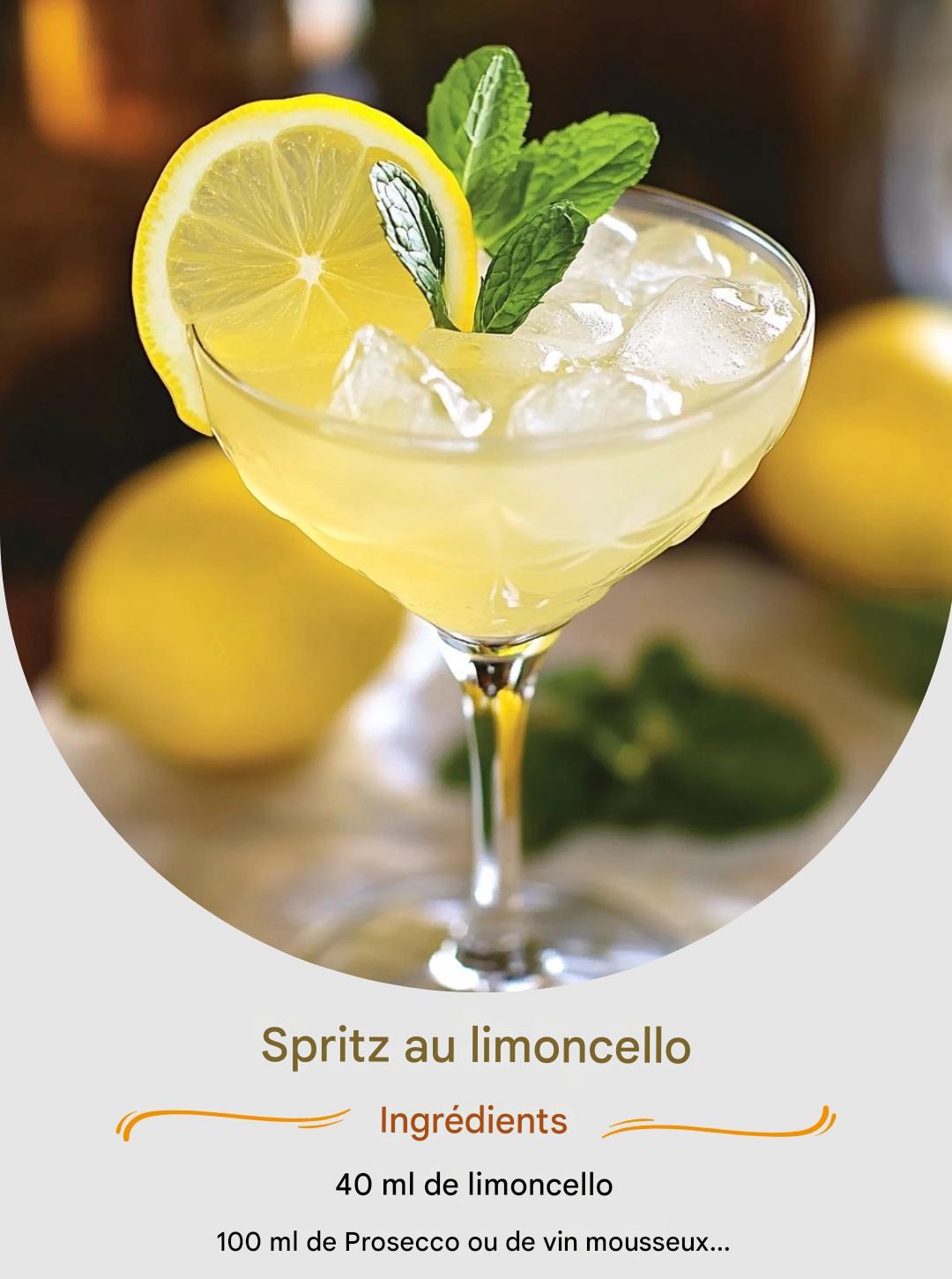 Servez le spritz au limoncello avec une tranche de citron et de la menthe.